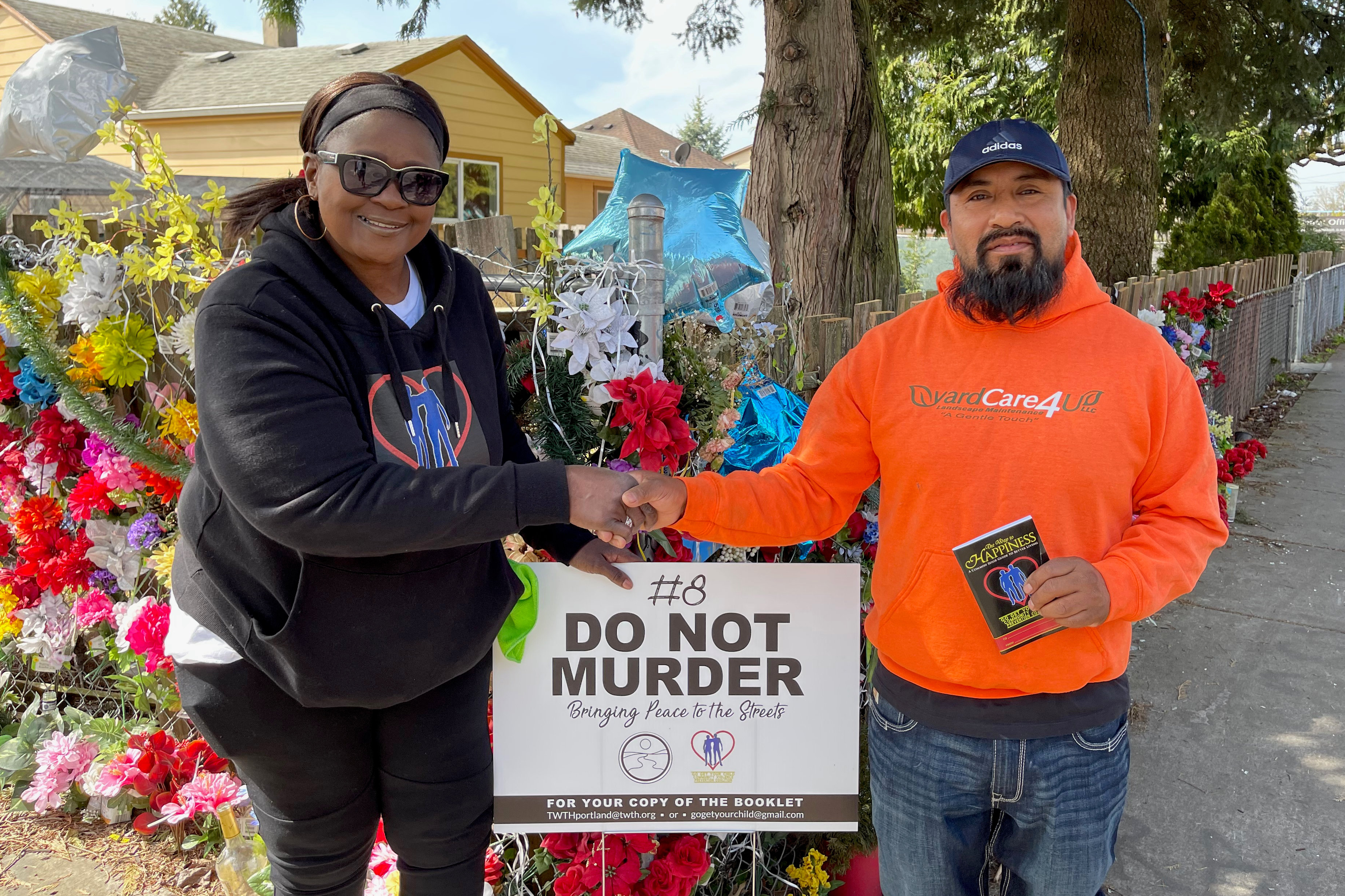 United in Peace vet at det finnes en riktig løsning på våpenvold, og de sluttet seg til andre organisasjoner for å marsjere gjennom gatene i Harlem for å gjøre det poenget klart og tydelig mens de delte ut Veien til lykke.